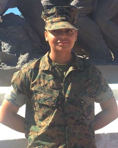 This webpage was originally set up to follow Jaida Lee Wilson's progress in the area of performing arts. An abrupt change of heart early in '17 shifted her direction towards becoming a US Marine - a hidden desire she confessed to have had "since eighth grade". As a result this website was put on hold, continuing with only limited updates.